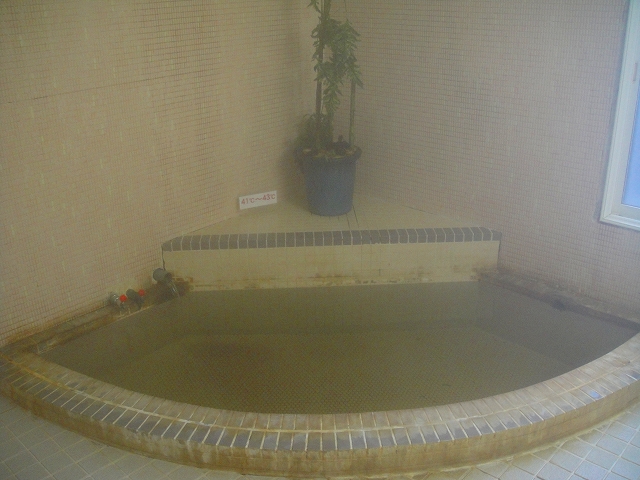 お湯は黄色透明の柔らかいもので、浸かればアブラ臭とツルスベ感あり。熱めなのも手伝ってか、10分も経たないうちにすぐ汗がしたたり落ちてきました。
