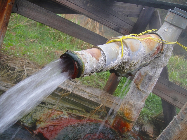 源泉パイプからは、常にドバドバとお湯が流れ続けます。