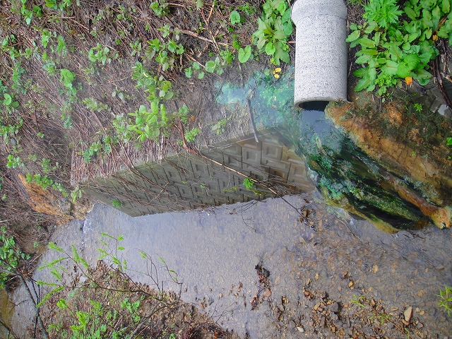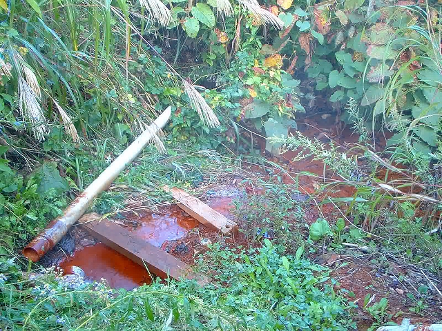 お湯は湯気を上げながら、地面を茶色く染めて流れています。