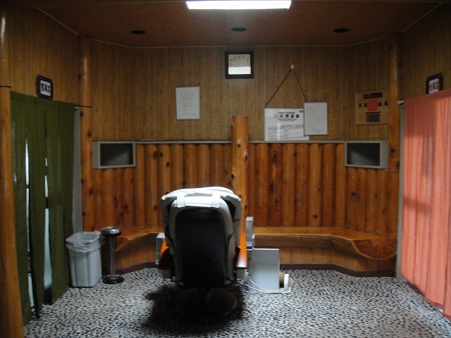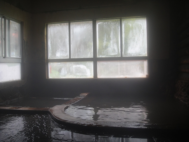 左の湯船は浅く丸太のような木が2本設置されていて、寝湯として使用するようです。温度は42.5℃で、上の湯で熱いお湯に浸かった直後ゆえ、ほとんどの時間をここの部分浴で過ごしました。