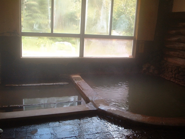 フロントで湯銭を払い、まず建物の左側(山側)へ向かいます。