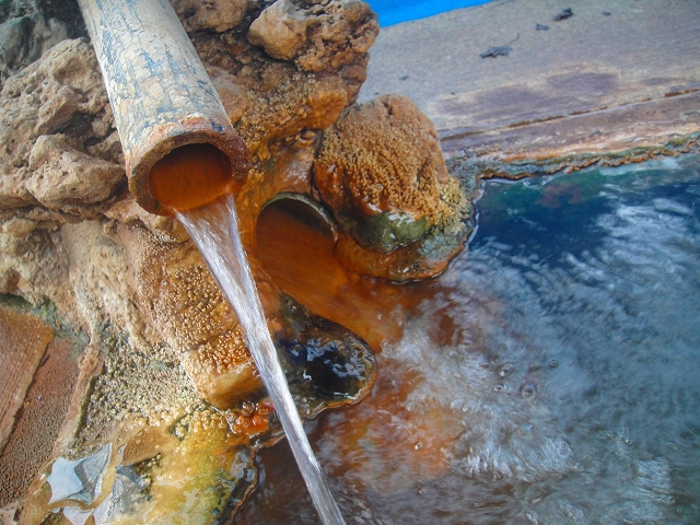 お湯の濁りは濃く、オーバーフロー部分が茶色になっています。成分によるのかエイジングによるのか…今と様子が違いますね。