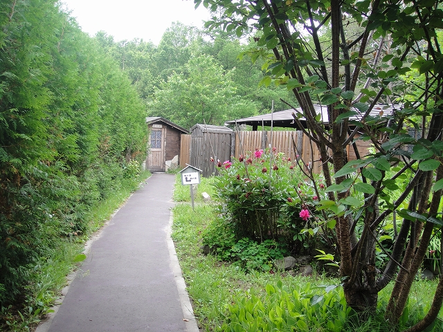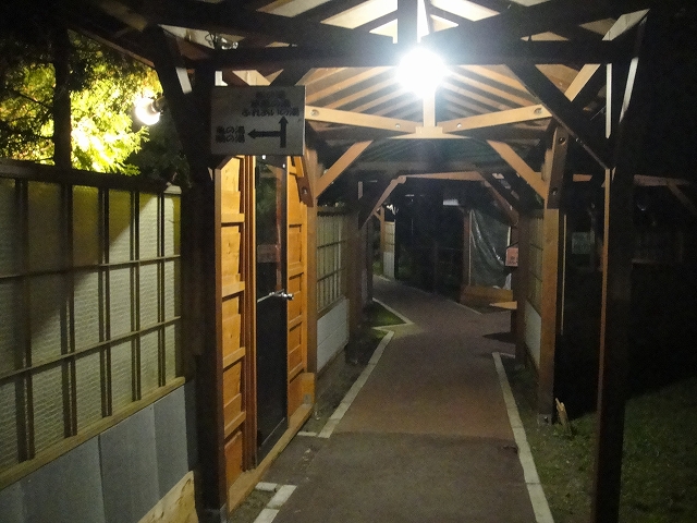 曲がらずにさらに進むと「松の湯」、そしてペット専用温泉「ふれあいの湯」があります。さらにその奥が現在閉鎖中の混浴露天風呂「草原の湯」となっています。