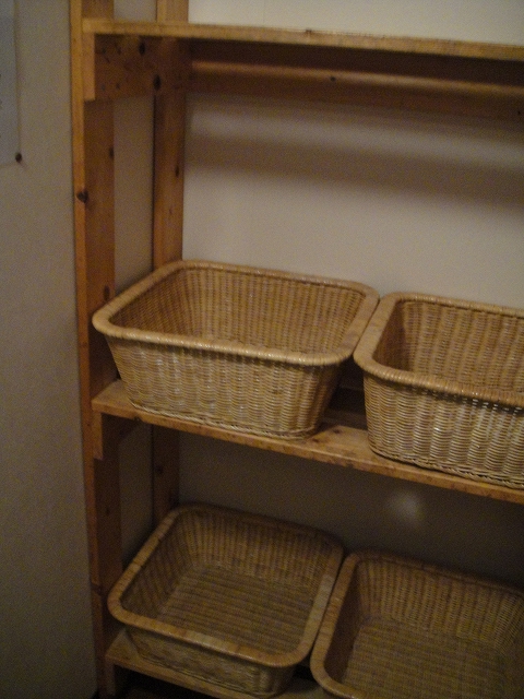 脱衣場は小さめで、入るとすぐ右にベンチと脱衣かご。
