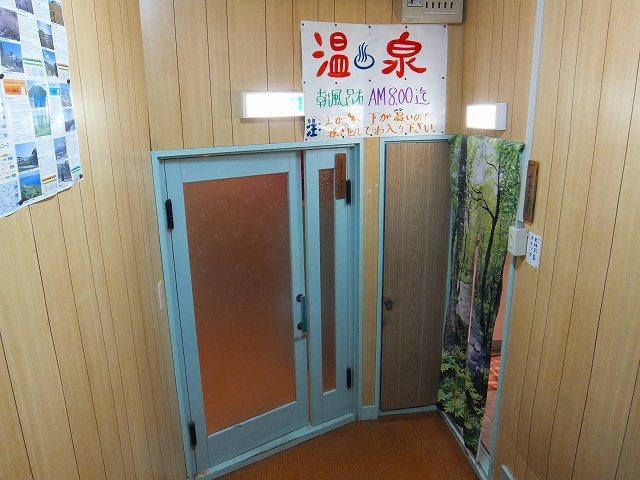 湯船に浸かりながら地元の方とご一緒していろいろな話をしましたが、この温泉はこの宿(と、すぐ近くの旅館志賀)に来る手前で学校の暖房などに使用されており、暖房の必要がない時期はお湯が熱めになるとのことです。
