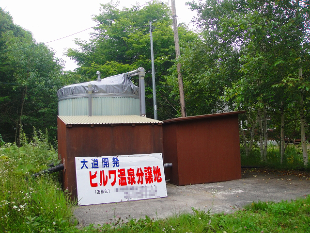 国道から曲がりしばらく進むと源泉タンクが見えます。
