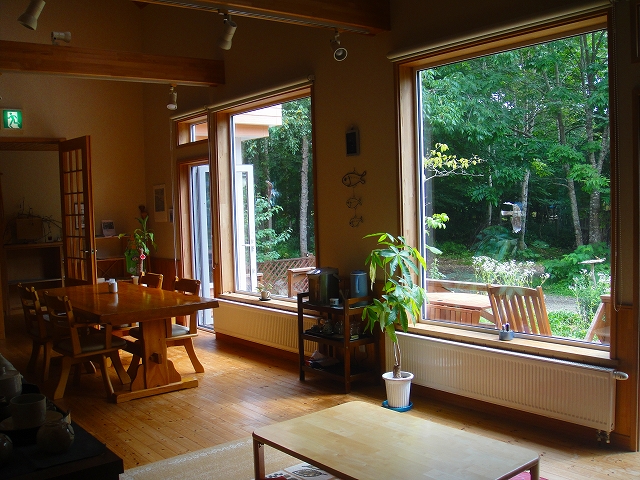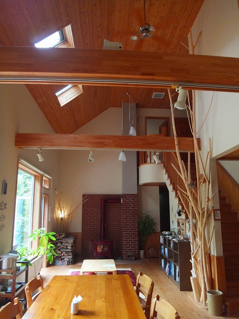 高い天井や薪ストーブなど、あちこちに目を奪われました。