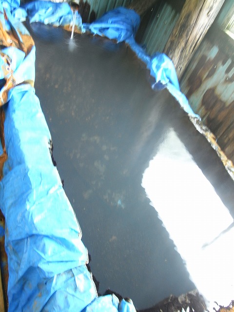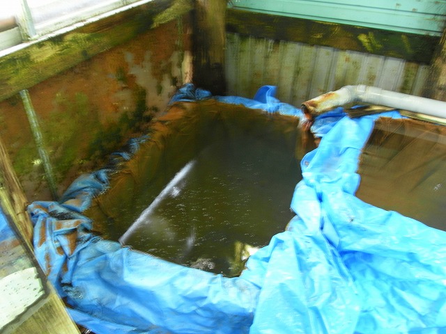 湯船は3つあり、浴槽にブルーシートをかけて使用しています。