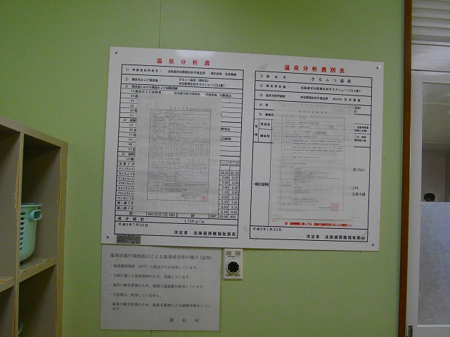 脱衣所には平成9年の分析書の上に平成19年の分析書が貼られていました。