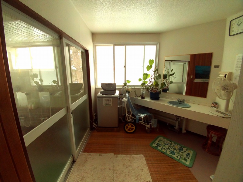 脱衣場へ入りました。全7室のペンションにしては広く、脱衣用の棚も十分な数があります。
