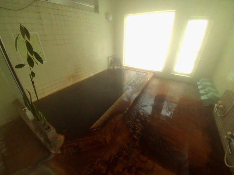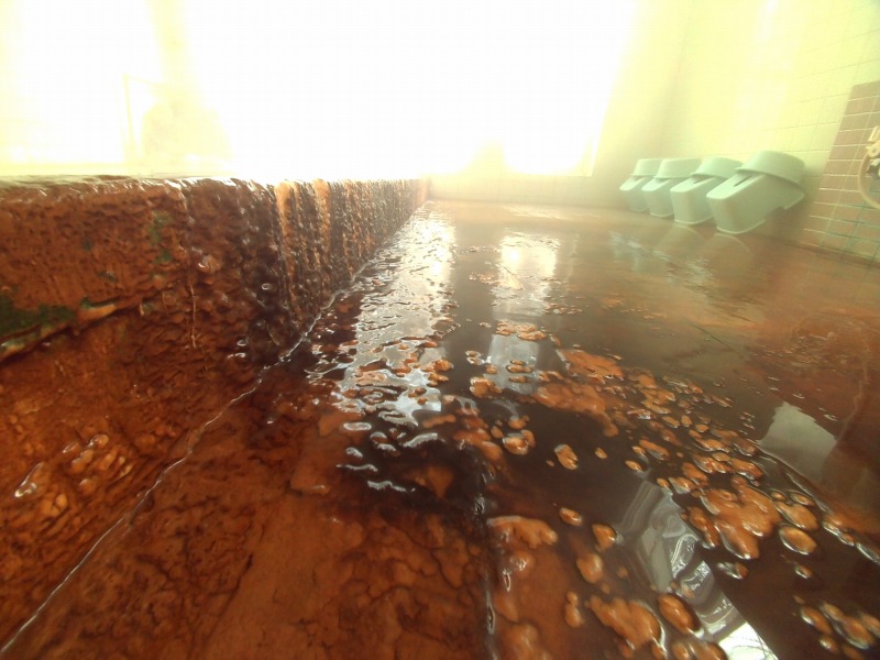 中に入ると真っ先に床に視線が向きました。洗い場まで色が変わり、成分が堆積する床・・・お湯に触れる前からお湯の良さが感じられる光景です。