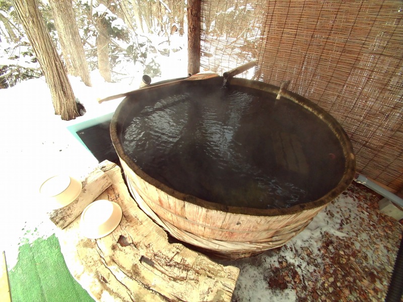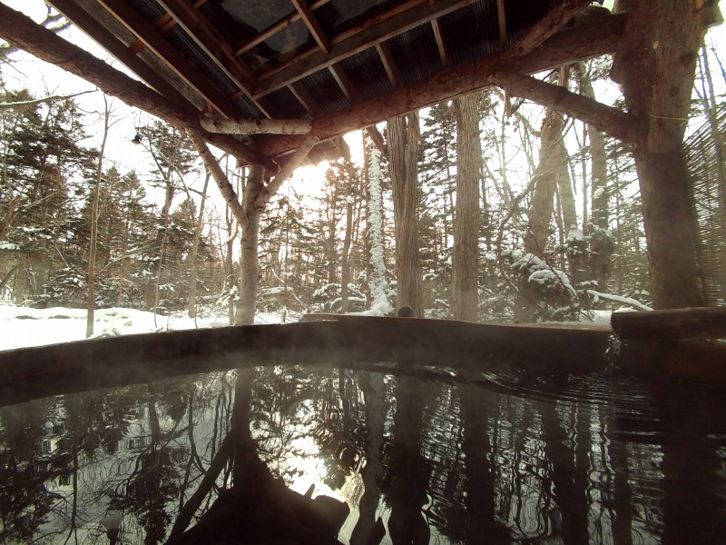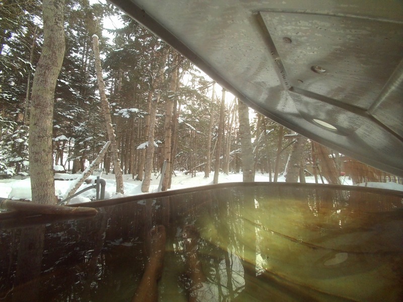 2,3人入れるくらいの大きさがあり、中は滑りやすいですが、浸かってしまえば快適。こちらも40℃に満たない温度で、静かな森を見ながらの湯浴みが楽しめる気持ち良い露天風呂でした。