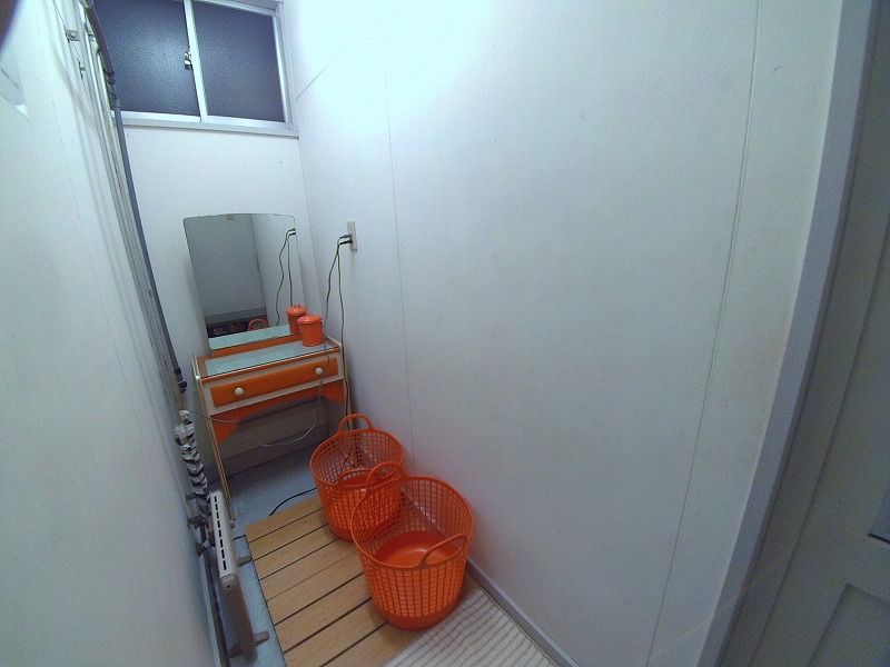 ドアを開けるとすぐに脱衣場があり、靴を脱いで上がりました。奥行きはありますが、かなり幅が狭い脱衣場です。