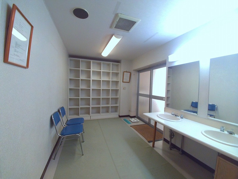 脱衣場に入りました。昭和の香りがするシンプルな脱衣場です。