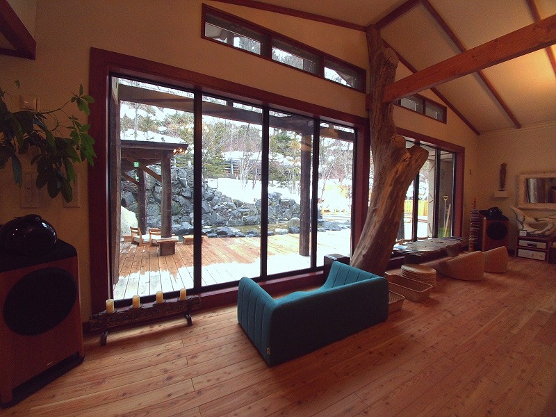 さりげなく置いてありますが、窓際のオーディオは自動車が買えるくらいのものです。ピアノと鳥のさえずりのCDがかかっていましたが、非常に自然で澄んだ音で、癒しの空間を演出するのに一役買っていました。