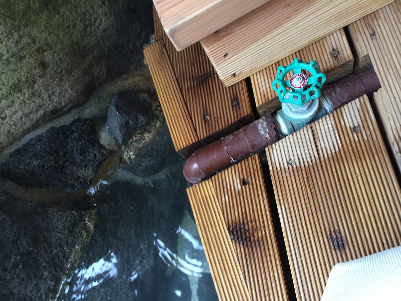 足湯には源泉バルブがあって、温度調整可能です。