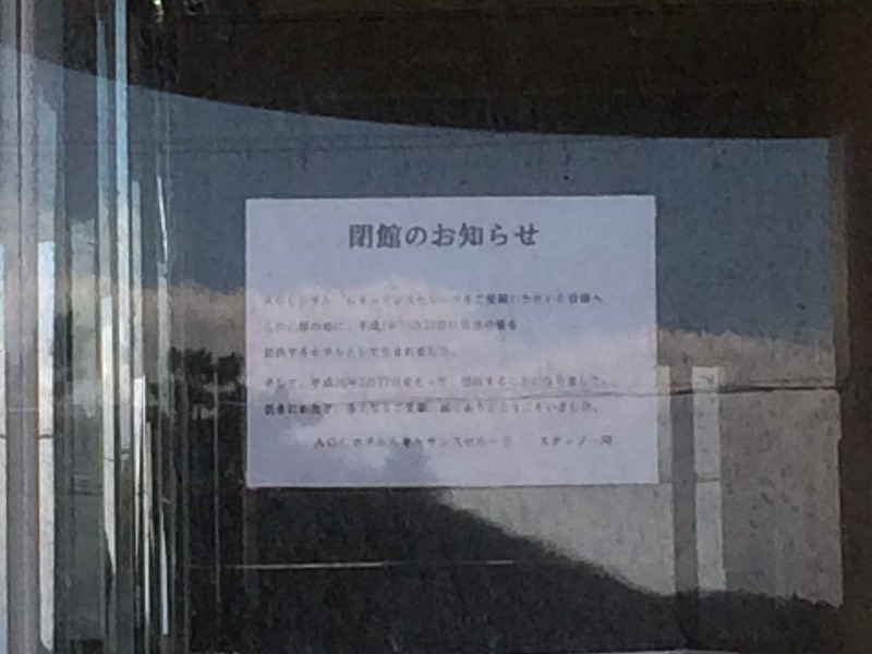 玄関には閉館のお知らせが掲示されています。