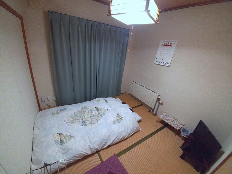 宿泊したのはこちらの4畳半のお部屋。備品は小さなテレビとテーブル程度で、既に布団が敷いてありました。