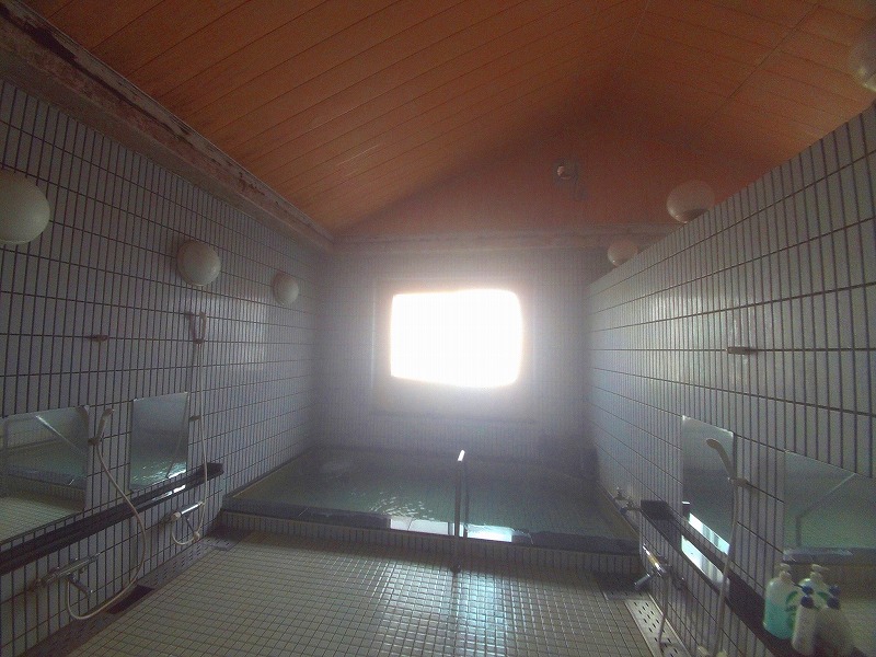 早速湯殿に入りました。内湯のみの小さな浴室で、手前両側に洗い場、奥に浴槽があります。