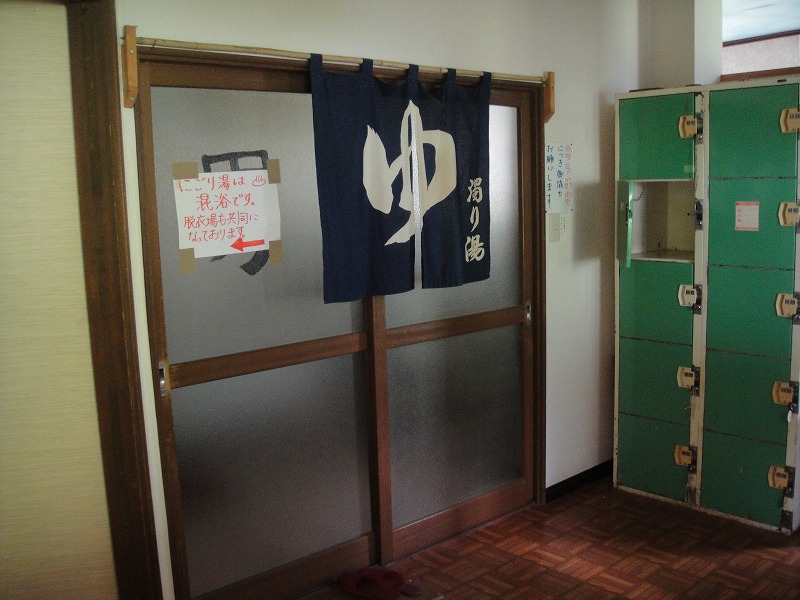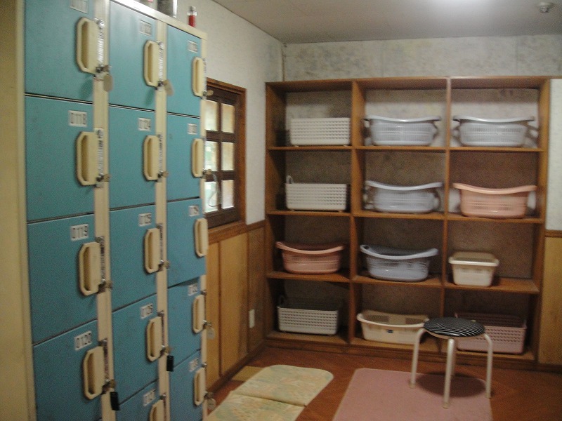 濁り湯の方より広く、ロッカーもある脱衣場です。