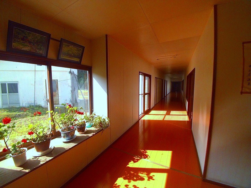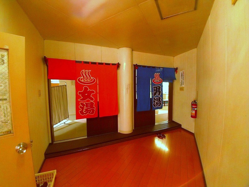 長い廊下を進んだ先に、脱衣場入口がありました。