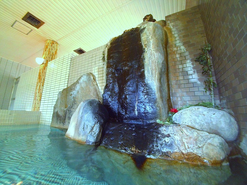 この奥の岩の下には少しだけ隙間があり、男女が繋がっています。このエリアだけ壁のタイルが異なりますので、以前はこの岩だけで男女を仕切っていたのかもしれません。