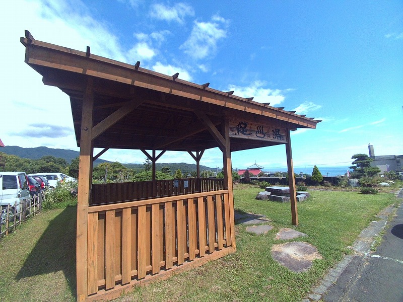 ここは足湯ができた直後に一度立ち寄っていますが、今回久しぶりに再訪しました。気持ちの良い青空で、足湯がある場所からは海が見えています。