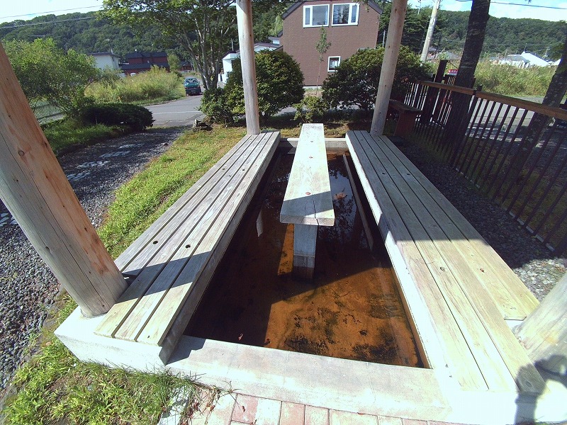 過去のニュースサイトでも同様の事が書かれておりますが、各家庭への配湯は洞爺湖温泉と同じような集中管理方式が採用されていて(洞爺湖温泉についてはこちらを参照)、各戸に配湯してタンクに戻ってくる未利用の源泉をそのまま足湯に使用しているそうです。