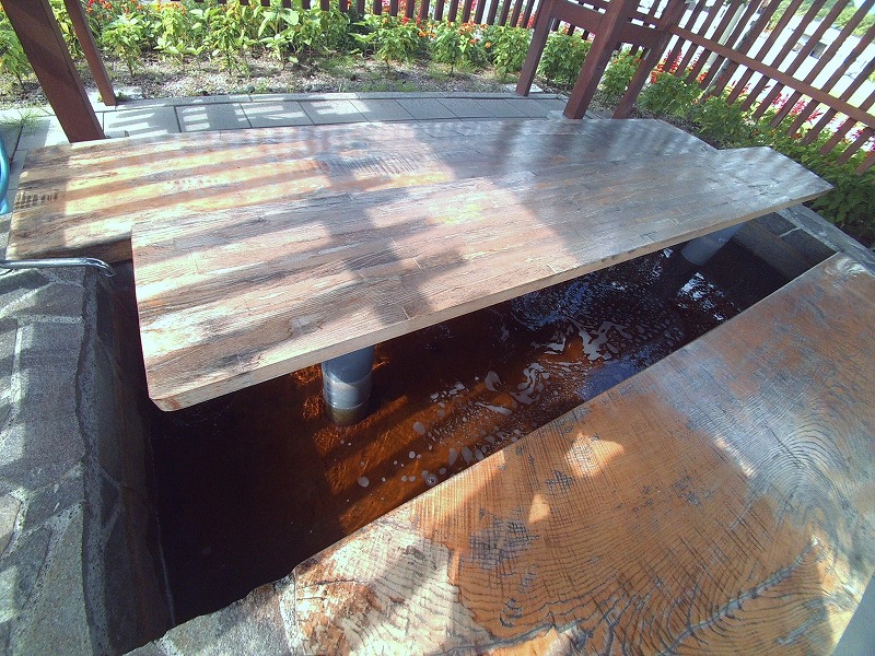 6,7人ほど座れそうな足湯です。