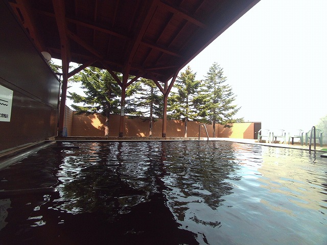 温泉を使用している露天風呂はたいへん大きく、20人以上入れる大きさがあり、半分ほど屋根がかかっています。