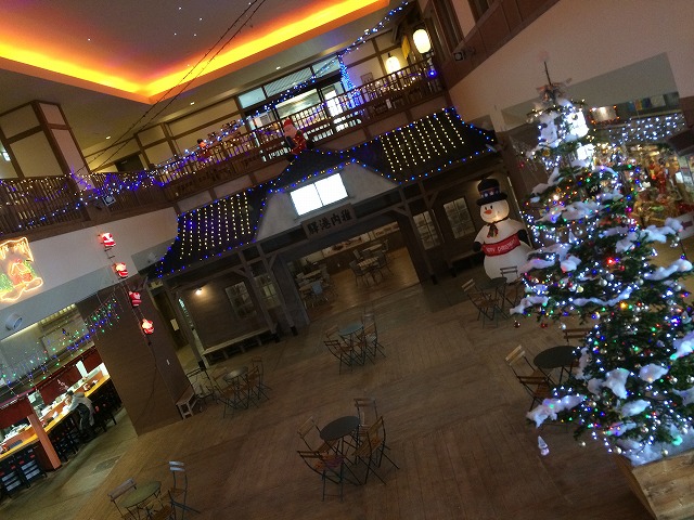 この時期、稚内副港市場もイルミネーションで飾られています。温泉の受付は建物の2階ですので、見ながら階段を上ります。