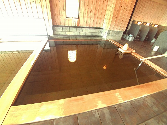 こちらは10人ほど入れる大きさで、温度は浴槽内で42.5℃。ここと露天風呂は源泉2本を混合したお湯を使っています。