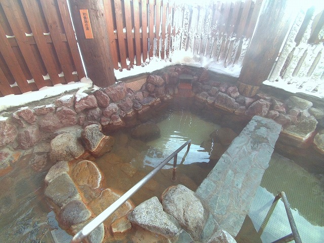 3-4人入れる大きさで、温度は41.4℃。冬の冷たい空気にちょうど良い暖かさで、一番長くここに浸かっていました。