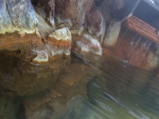 源泉の湧出量はどれも控えめながら、全ての湯口が茶色く染まり、全てかけ流しでお湯を使っています。