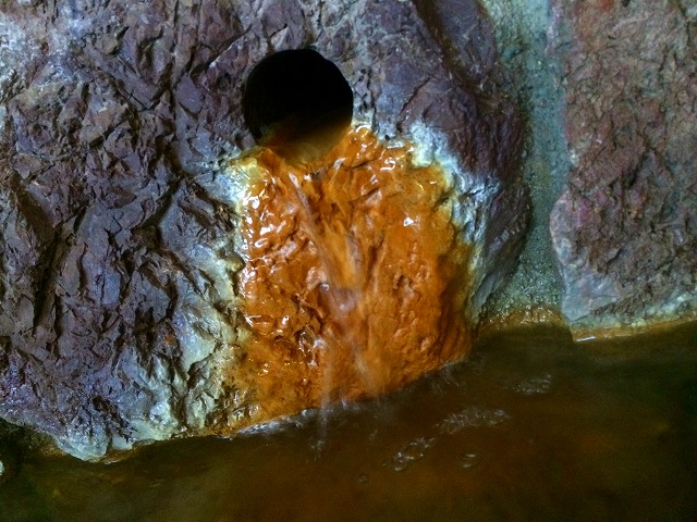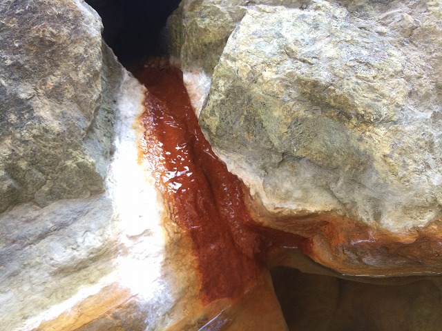 こちらの湯口も、湯量はごく僅かながら綺麗に色づいています。