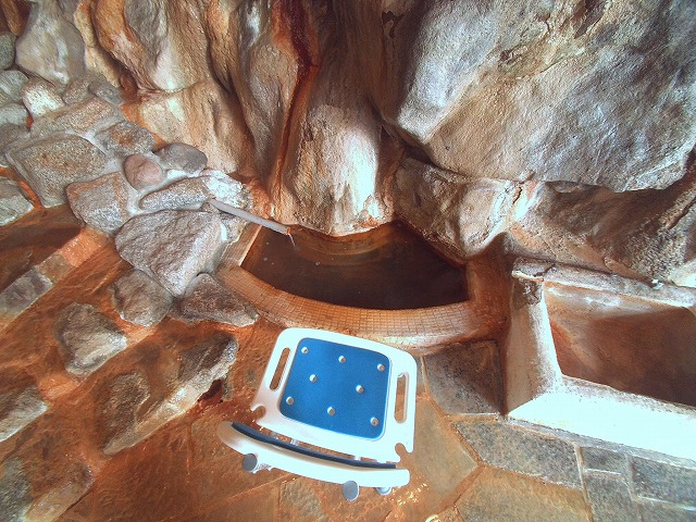 コンカニペの湯の階段下には小さな湯船。このお湯には名前がついていませんが、椅子が置いてあって足湯できるようになっています。
