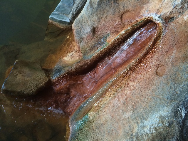 この湯口は以前から変わっていませんが、掛け流しの温泉らしい見事な姿です。湯口の温度は48.3℃ありました。