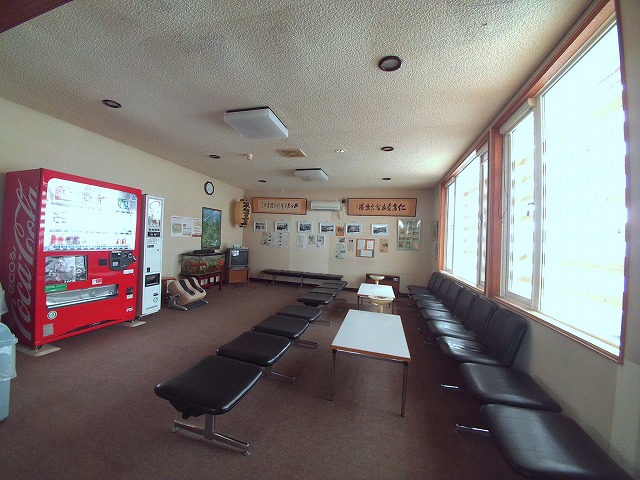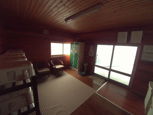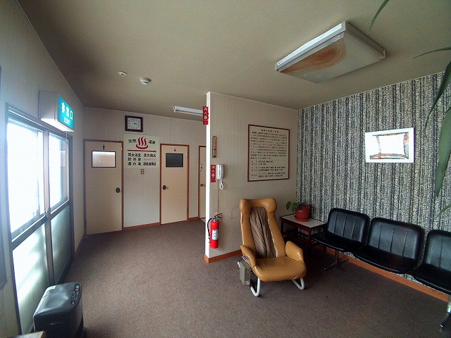 廊下を進むと休憩スペースがあり、その先を曲がると脱衣場の入り口です。