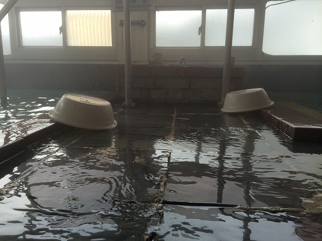 そして、こちらもお湯は湯船から溢れ続けていました。