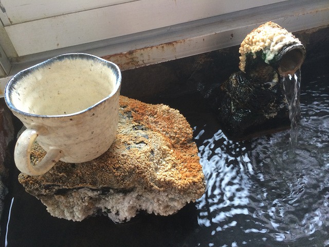 温泉が時間とともに作る風景はいいものだなと思う飲泉場でした。