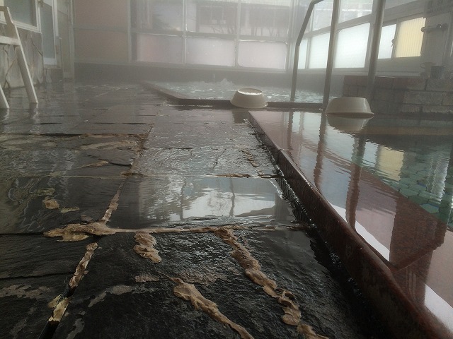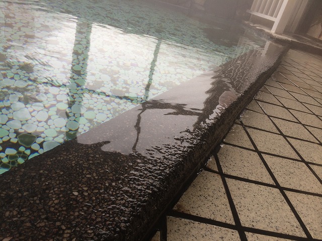 男湯のドアから露天風呂に出ると、ドアの目の前までお湯が張っていて驚きました。