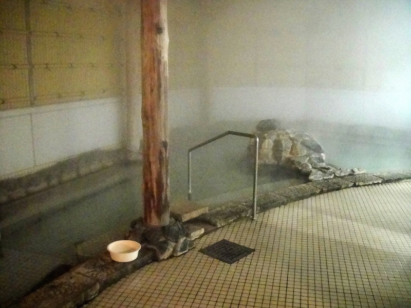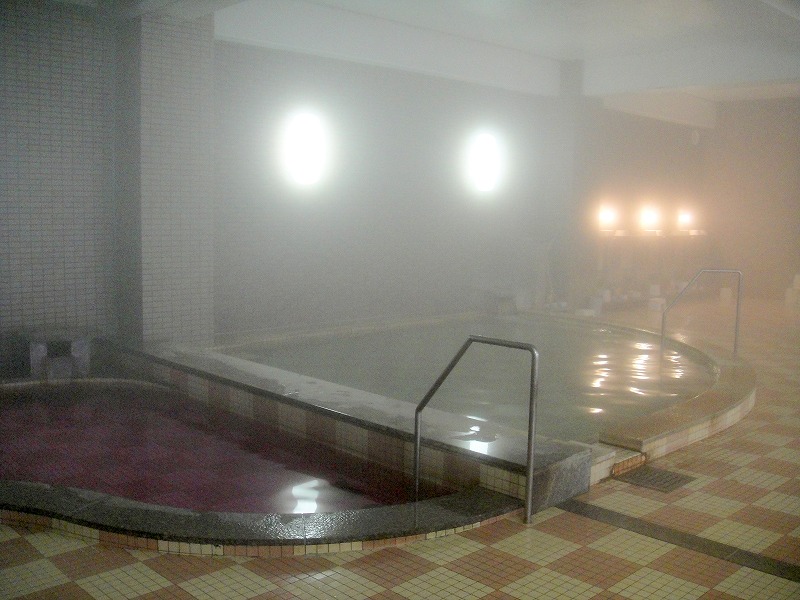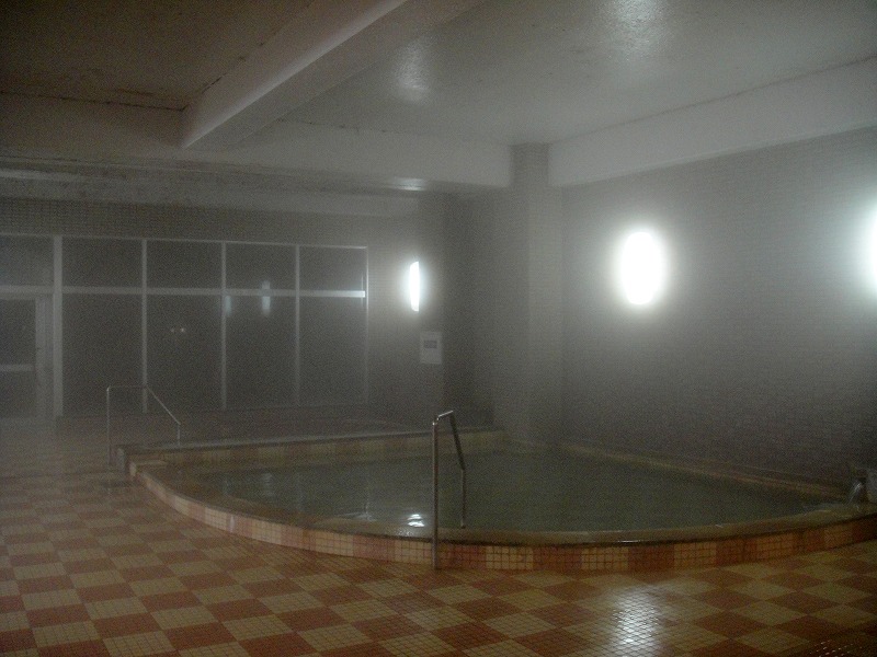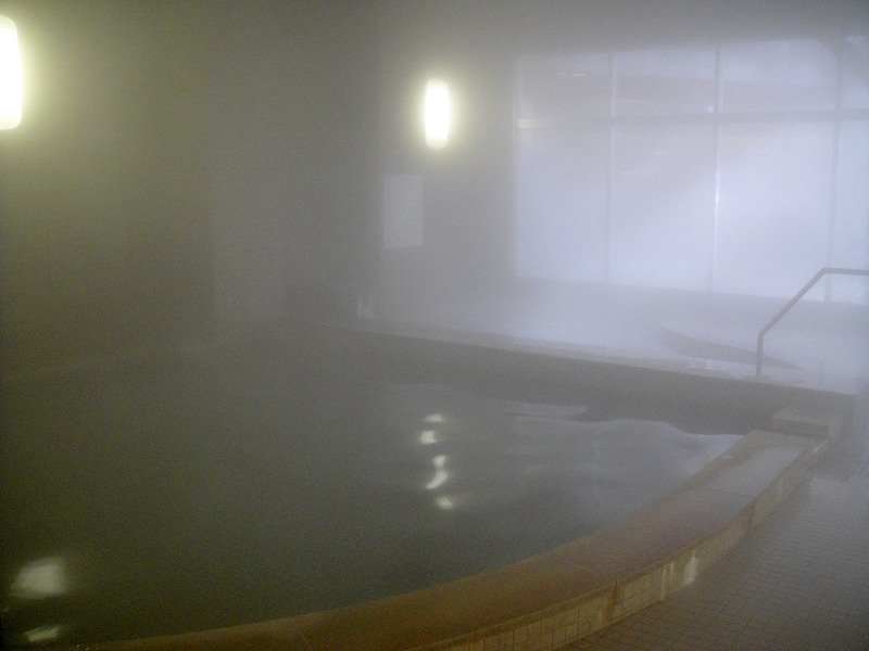 早速大浴場へ・・・入りましたが、洗い場の位置も見えないほどの湯気でした。