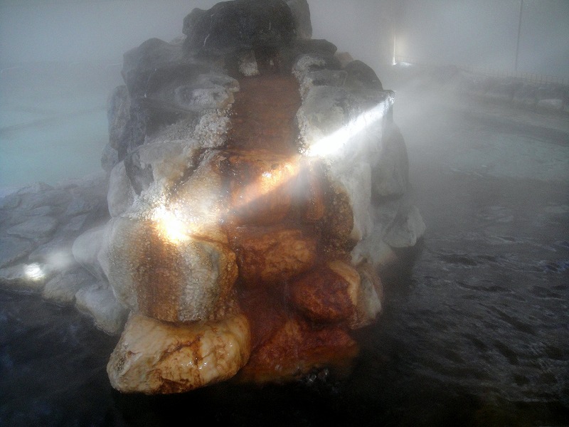 茶色く染まり、析出物が堆積してきている湯口で、これを見ながら浸かっているだけで温泉らしさをさらに感じました。