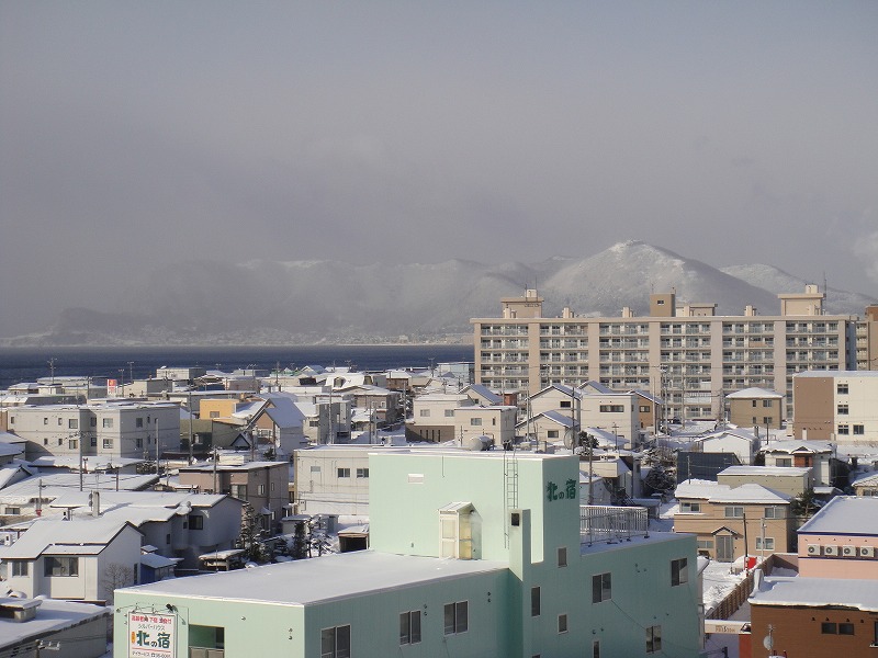 お部屋は海側にあり、窓の外には温泉街と函館山が見えます。