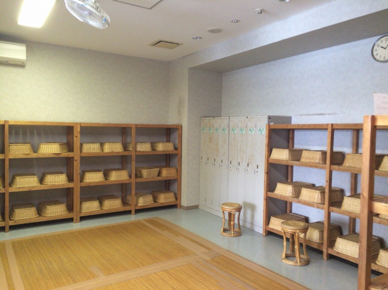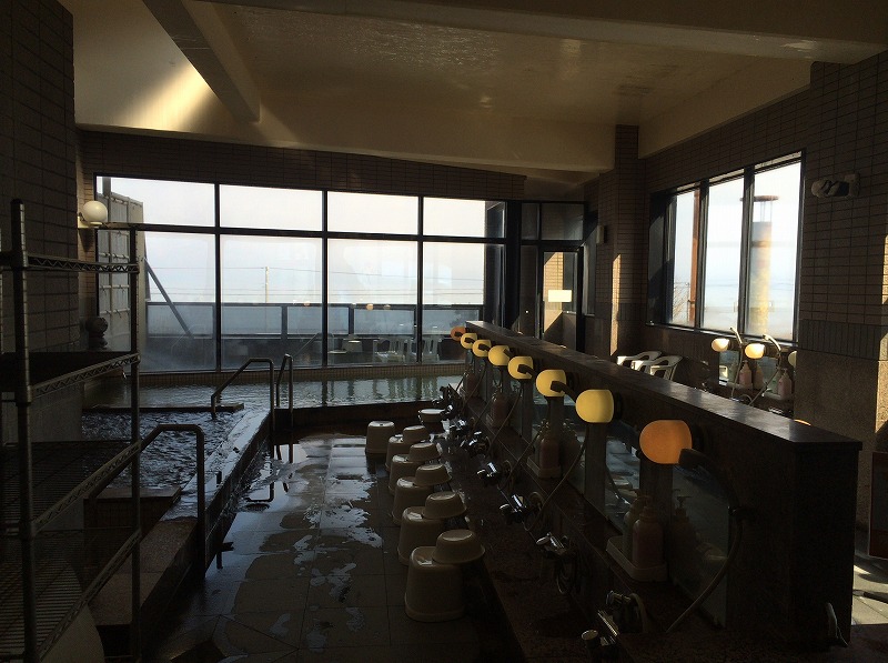 こちらは朝7時から営業しており、日帰り入浴専用の出入口もあるのですが、朝7時から11時までの間はホテルのフロントでの受付となります。フロントで湯銭を払い、ホテルの2階へ向かいます。