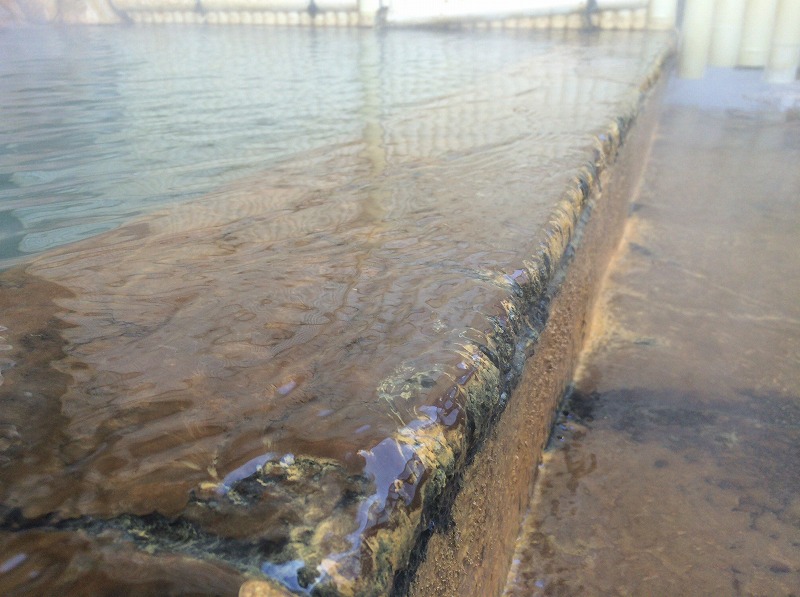 泡風呂で撹拌されるからか、泡風呂の湯船の周りに凸凹の析出物が見られます。