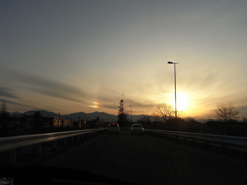日高山脈の山の上に縦に虹のようなものが見えるのがそれですが、この日の幻日は新聞等にも写真が載ったようで、貴重な経験をすることができました。