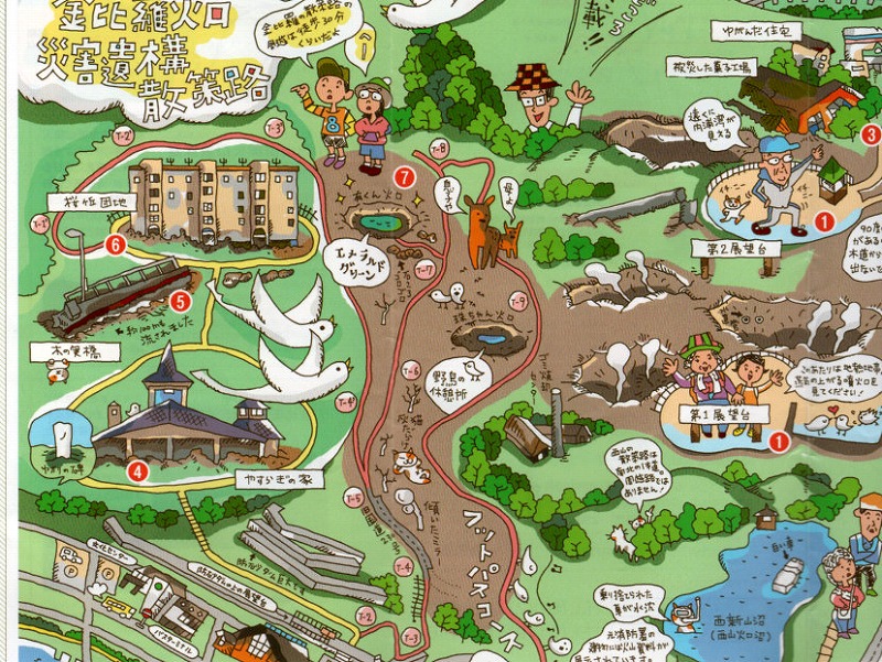 有珠山の北西にある金毘羅山は、2000年の噴火の際、西山の噴火の翌日に噴煙を上げました。この噴火による死傷者はいませんでしたが、熱泥流により多くの被害が発生し、現在でもその被害の様子を見ることができます。