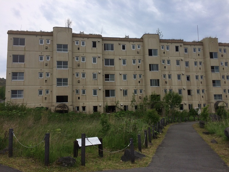 1階部分が埋れた「桜ヶ丘団地」を通り過ぎます。