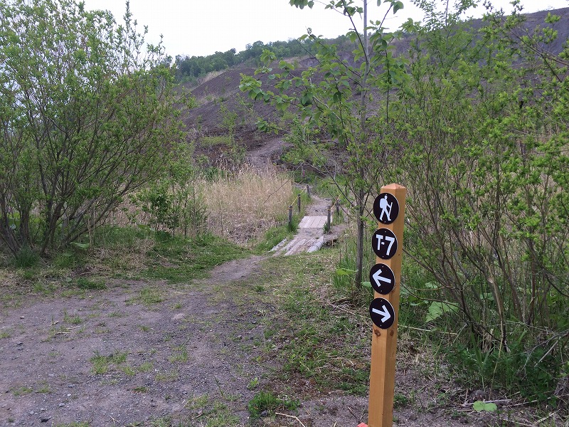 分かりやすくちょっとしたユーモアのあるイラストで、これを頼りに散策路を歩きました…と言いたいところなのですが、最短距離で火口まで行くはずが、なぜかマップを見ているのに遠回りのルートを歩いてしまいました。